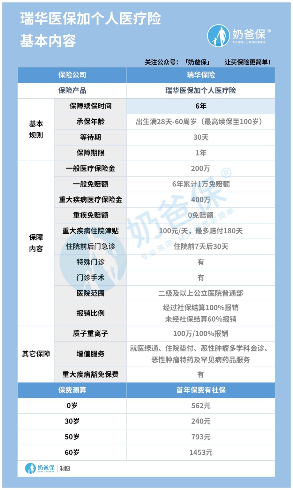 至于瑞华医保加的保障内容,相信大家已经看了很多相关的测评文章,奶爸也不打算再啰嗦讲一遍。