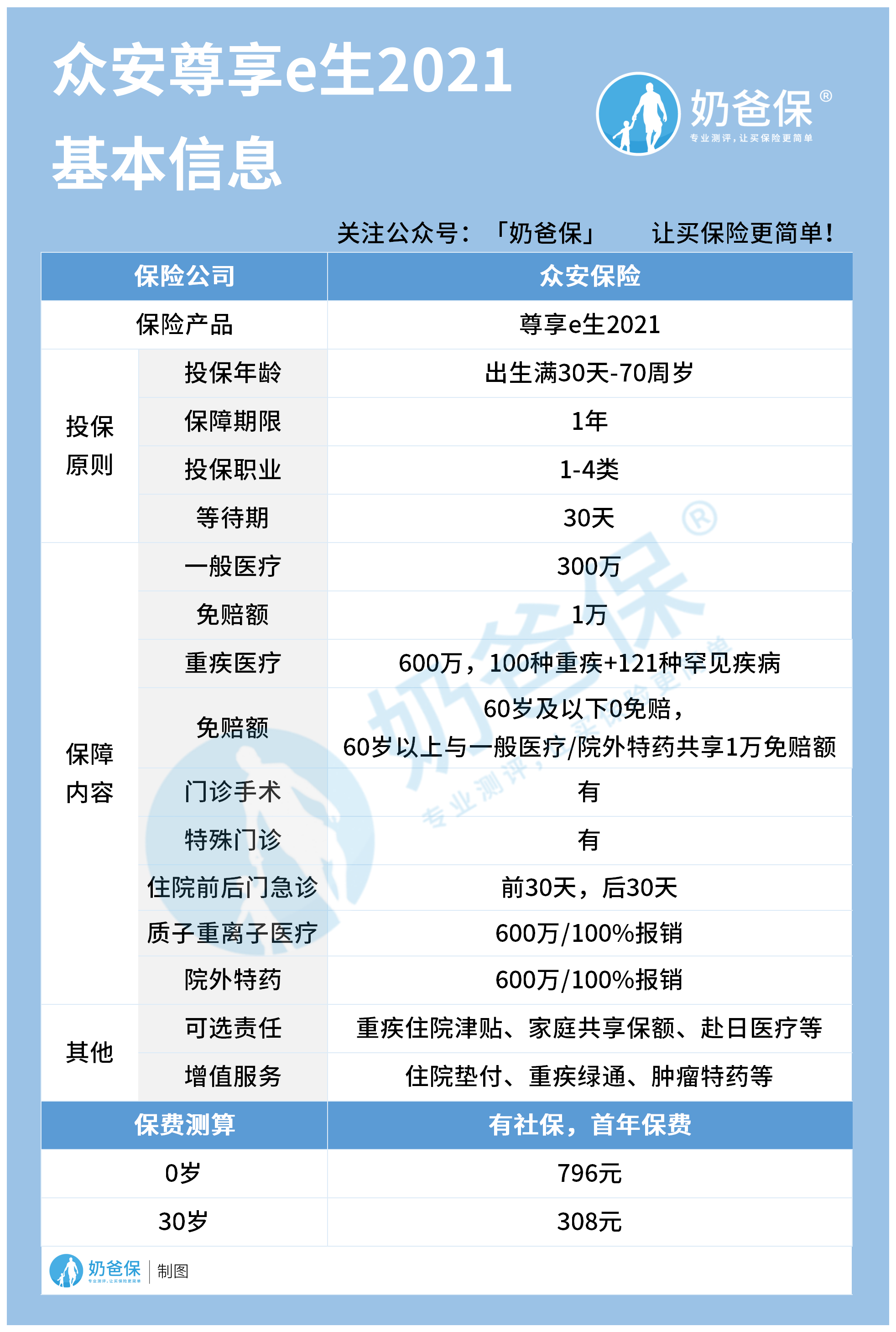 关于尊享e生2021百万医疗险的详细测评,奶爸在这里写过:《众安保险尊享e生2021好不好?值得买吗?靠不靠谱?》。
