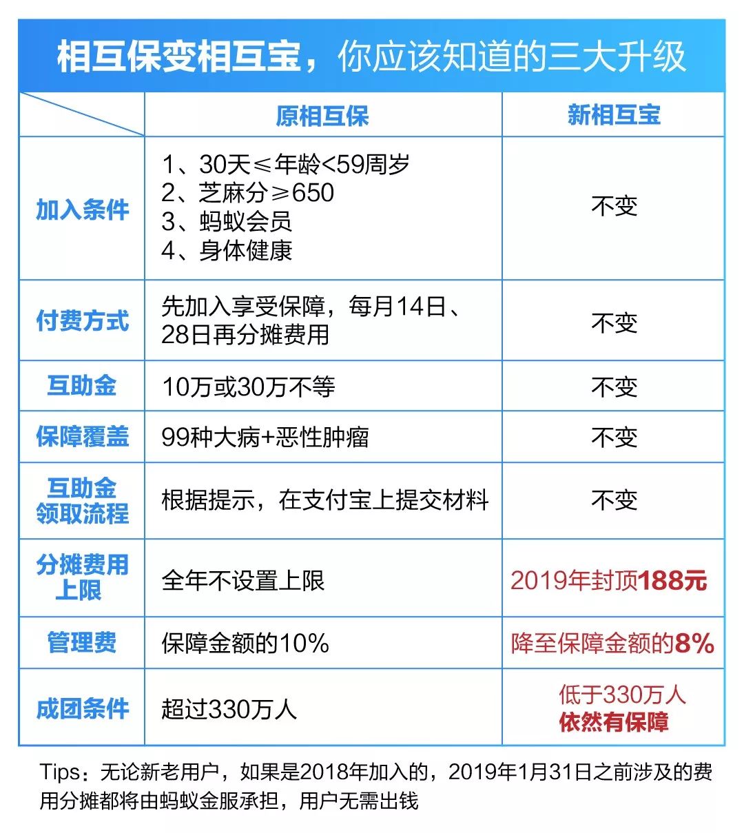 3、未来如果“相互宝”的参与人数低于330万,计划也不会立刻解散,继续为用户提供一年的大病保障。