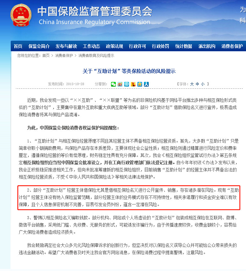 虽然蚂蚁金服很强大,但是信美相互退出后,由保险产品变成网络互助计划,性质是完全改变了。关于互助计划跟保险的区别,之前保监会曾专门发过相关的风险提示。