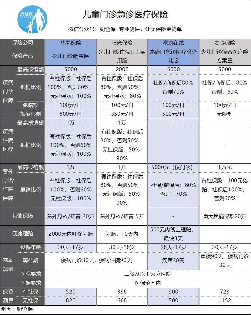 儿童门急诊医疗险,华泰少儿门诊暖宝保综合性价比最高,比较推荐。而如果想要纯粹的门急诊医疗险,也可以考虑支付宝上面的泰康门急诊医疗险。