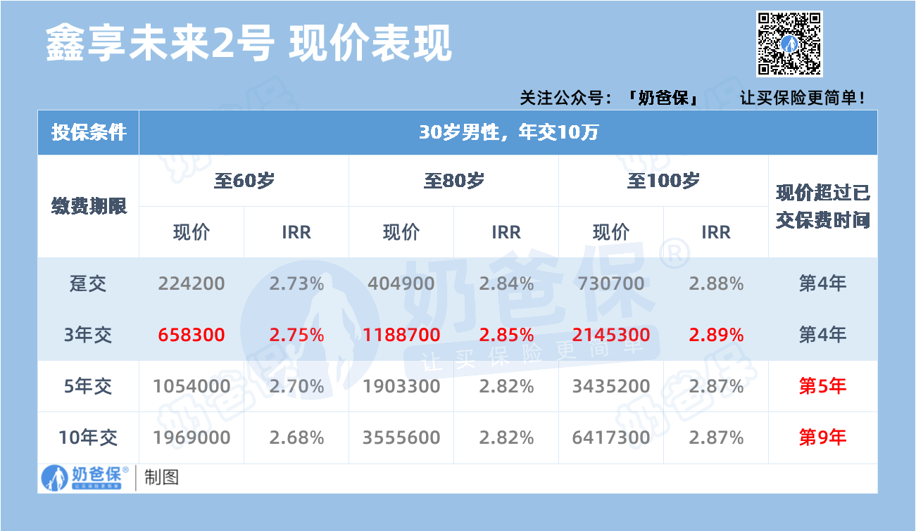 而且长期IRR稳定在2.8%以上,3年交甚至可达2.89%。
