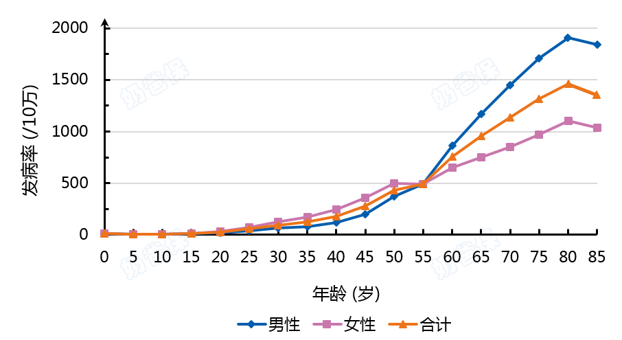 在20岁之前,癌症的发病率相对较低,但随着年龄的增长,发病率开始逐渐上升。