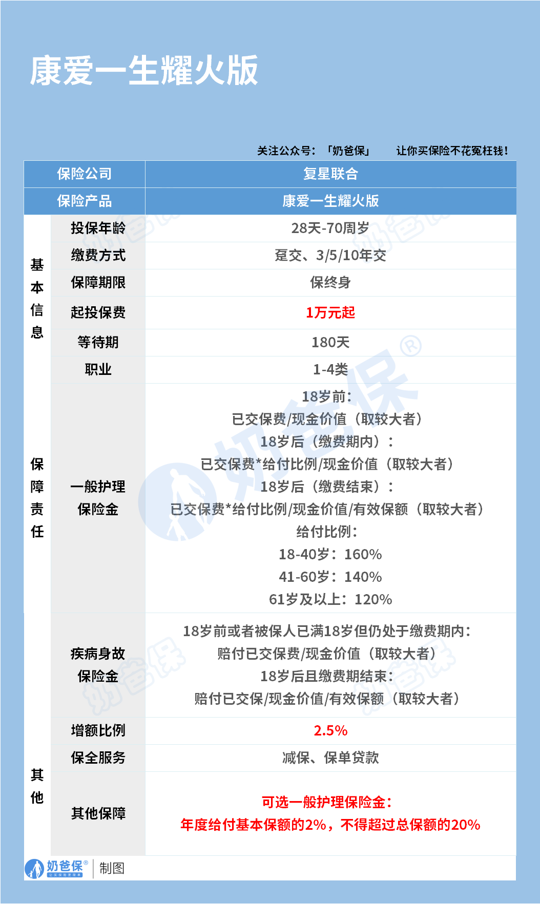 今天奶爸介绍的是复星康爱一生护理险耀火版。