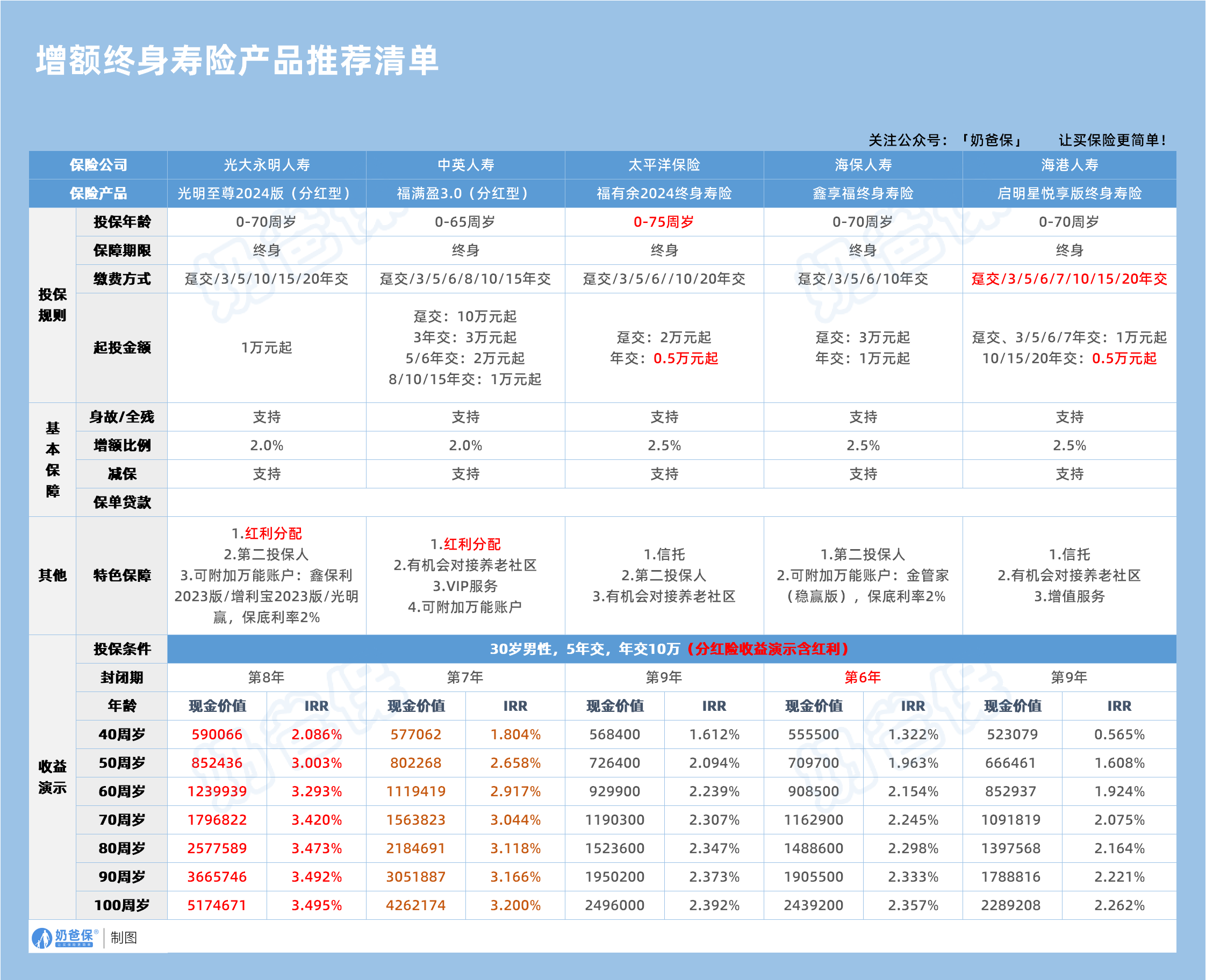 奶爸也整理了目前市场上保障内容和收益表现都不错的终身寿险产品,一起来看看。