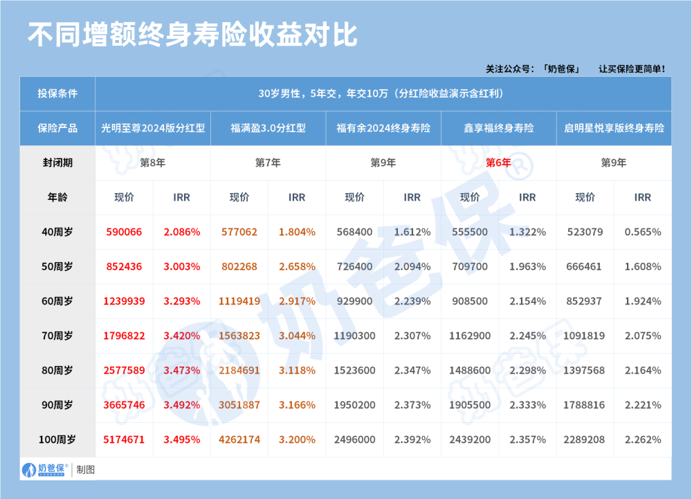 保单持有10年,IRR超过2%;保单持有20年,IRR率超过3%