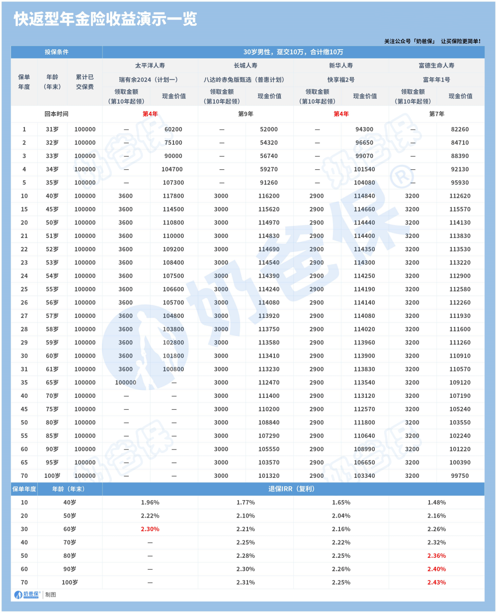 目前市面上快返年金不少,给大家物色了4款产品: