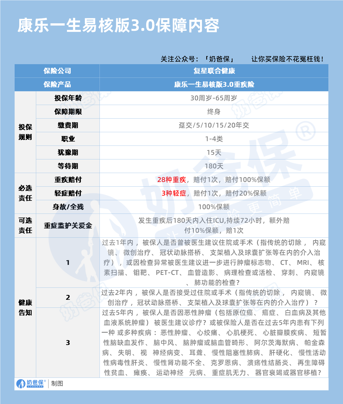 特别是对于患有结节、三高、年龄偏大等难以投保常规重疾险的人群来说,这款产品无疑是一个福音。