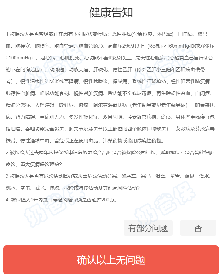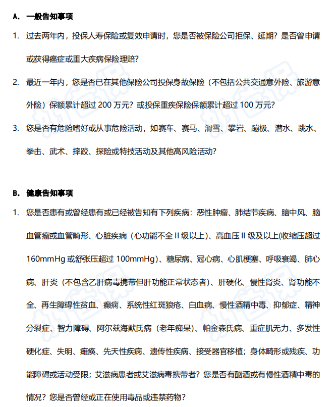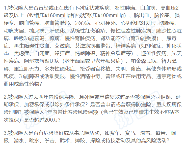 健康告知只有最基础的3条,不询问除乙型肝炎外的肝炎,非常友好!
