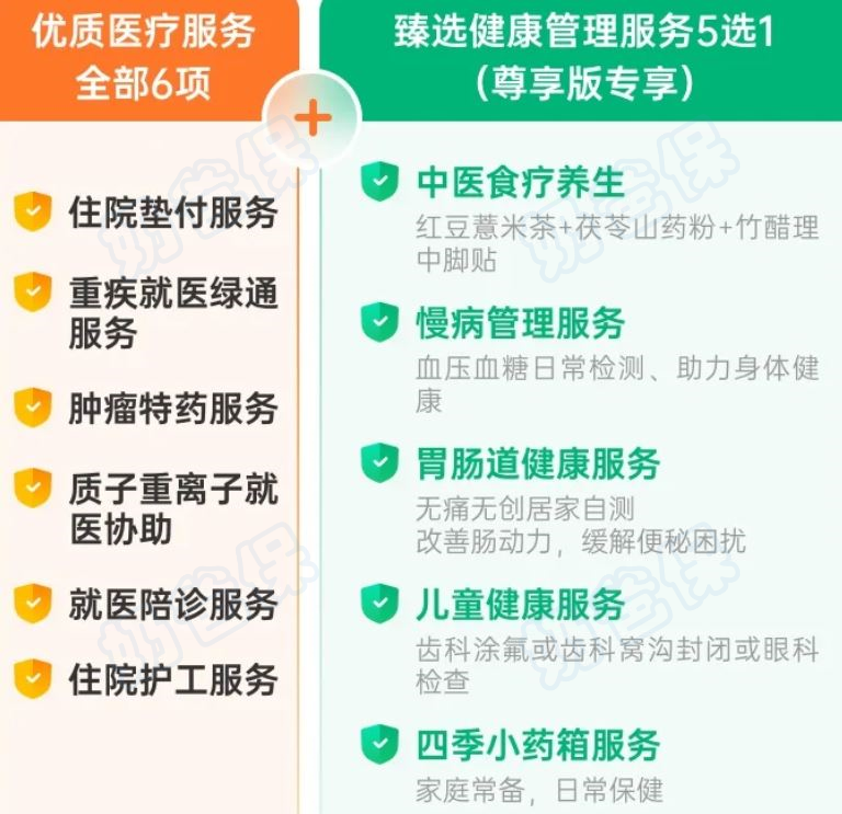 如果你选择了尊享版,可以享受到臻选健康管理服务(5选1)。