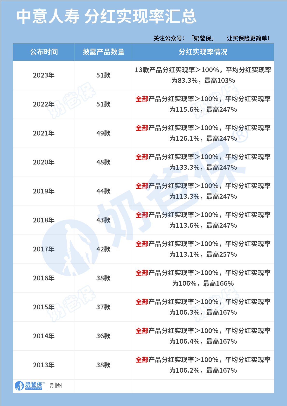 ①2013-2022年,连续十年所有产品红利实现率≥100%;