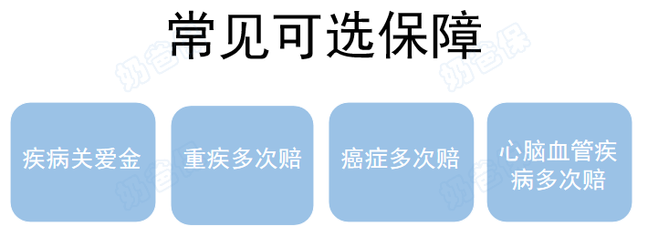 除身故保障外,重疾险常见有四大可选保障责任:
