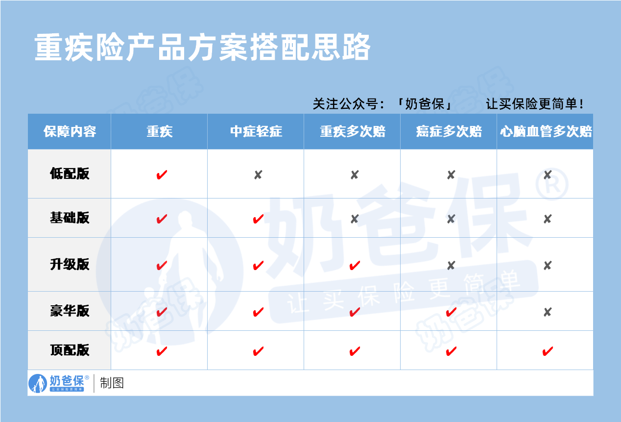 比如比较看中赔付次数的,可以适当增加重疾多次赔保障;