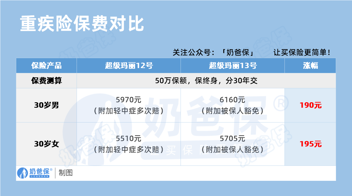 以超级玛丽13号为例,对比旧款,同样投保条件和保障,30岁投保一年贵了近200元。