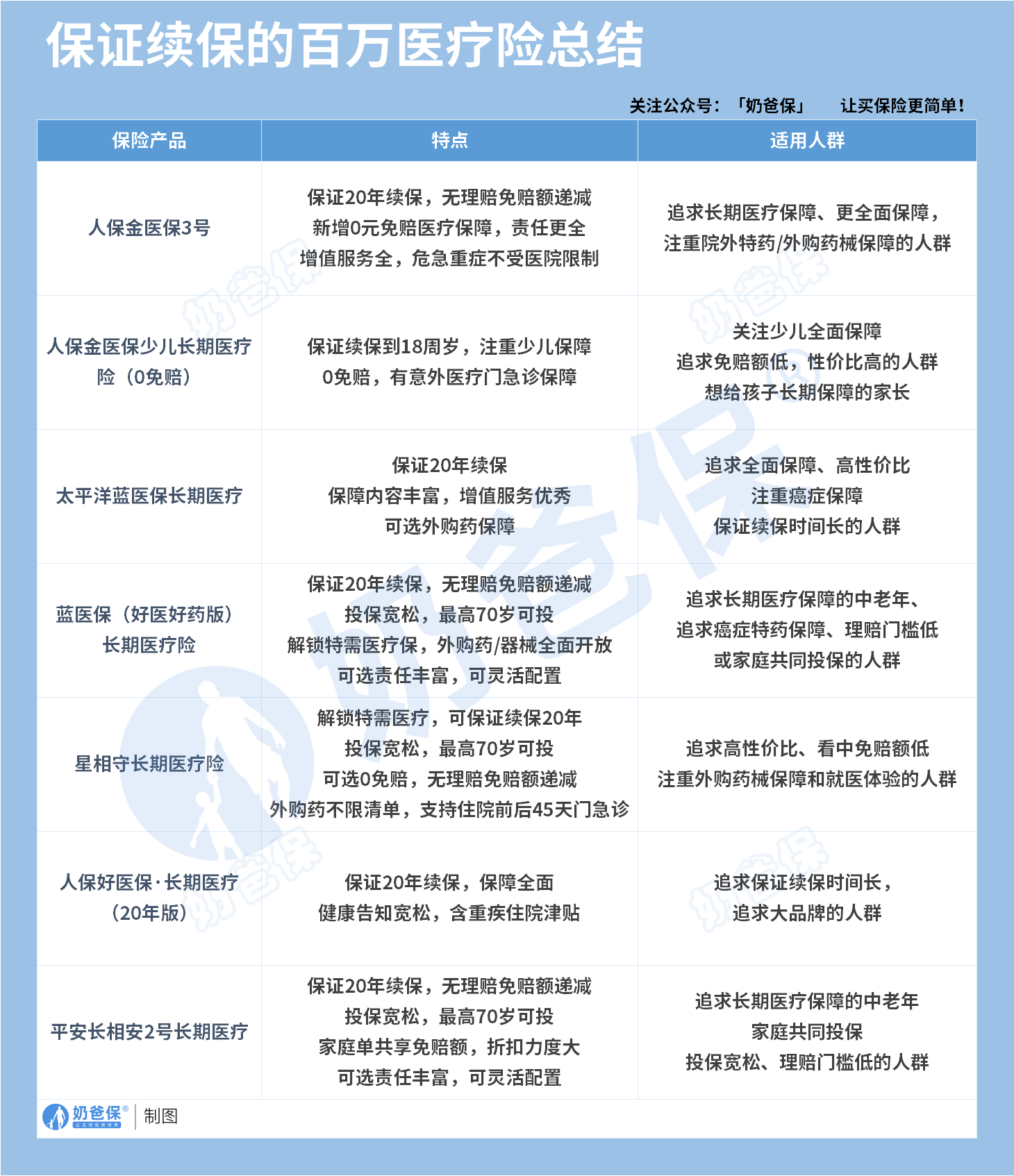 根据保证续保时间的不同,奶爸将医疗险分成了长期医疗险和一年期医疗险:
