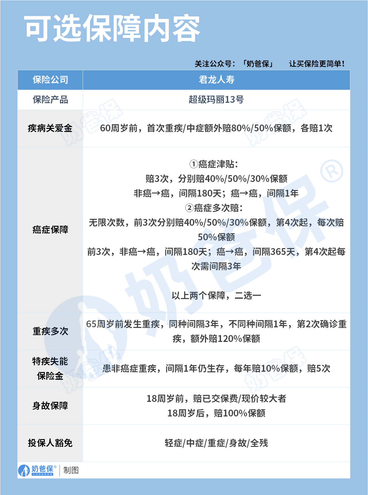 二、超级玛丽13号重疾险可选保障要怎么选?