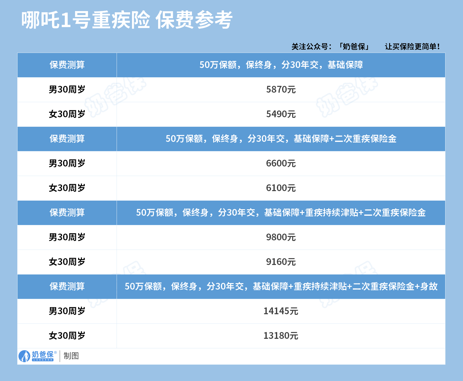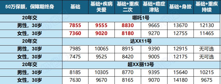 但相比超级玛丽和达尔文来说,哪吒1号身故附加费率略高一些。