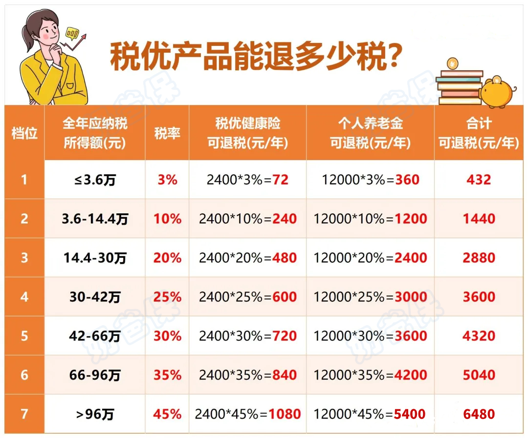 买税优险能退多少个税,是跟大家的个税税率挂钩,