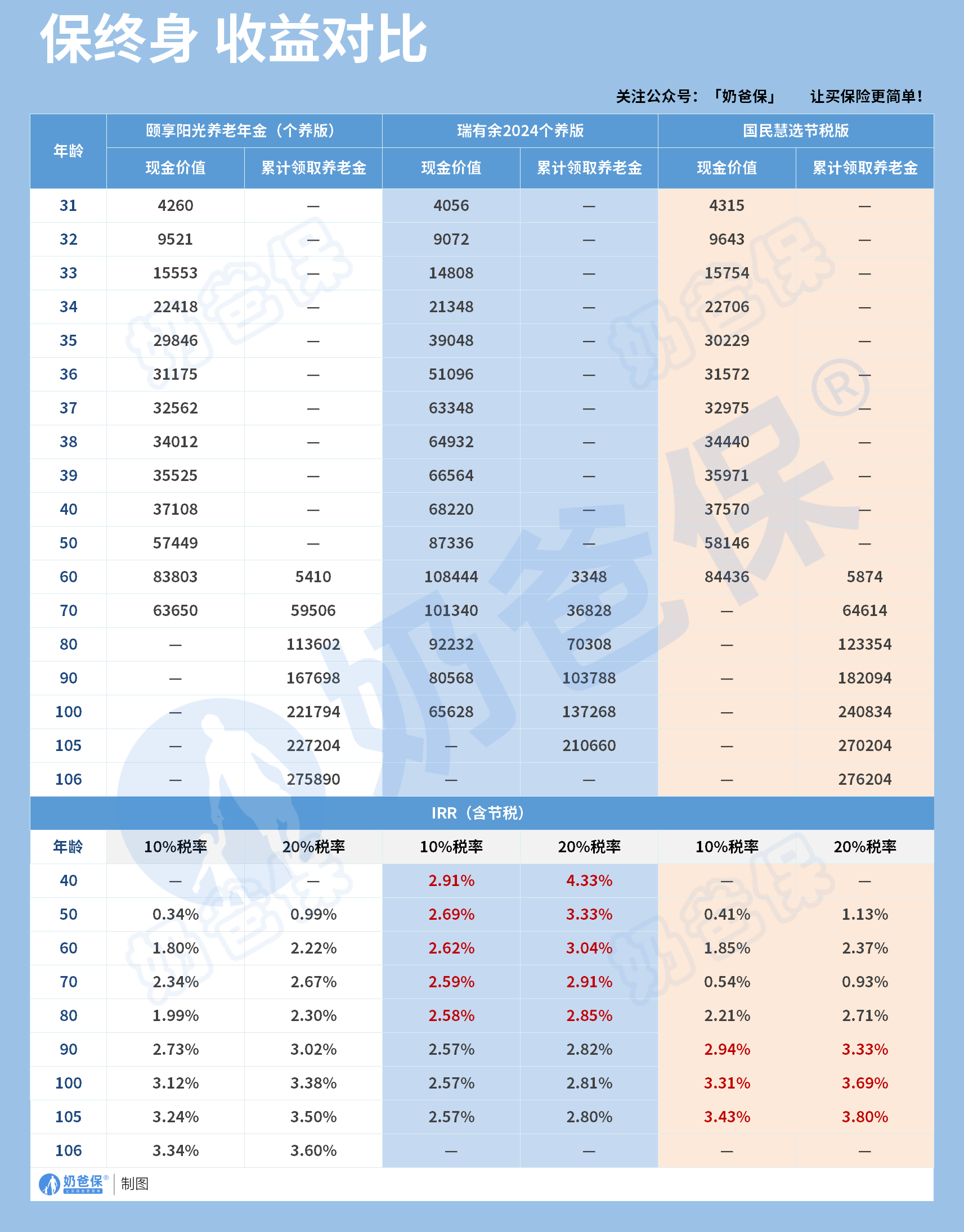 如果是20%税率,36岁时IRR(含节税)就有4.32%;