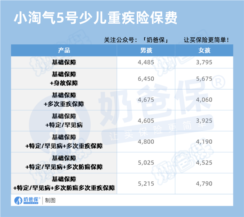 例如,添加“多次重疾”责任,男宝年缴仅190元;