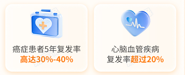 癌症患者在治疗后5年内复发率高达30%~40%,而心脑血管疾病复发率超过20%,