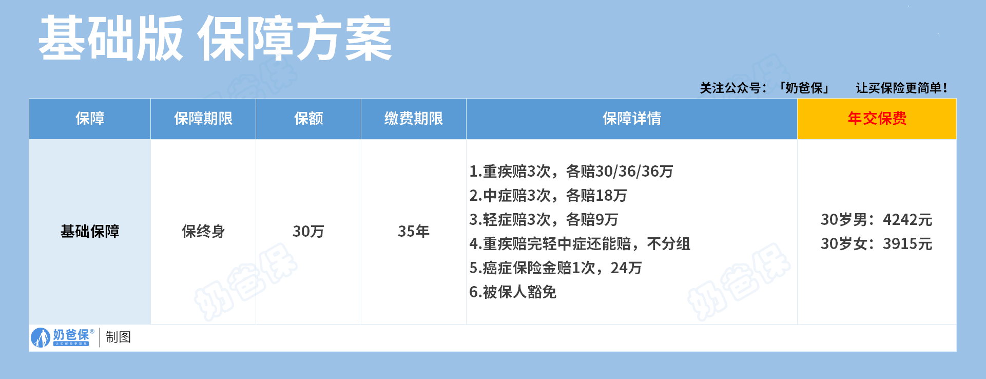 基础保障很齐全,重疾、轻中症都有保,高发轻症也都有包含。