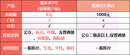 复星联合增多多7号的健康金,分为两部分,全方位覆盖日常健康管理需求: 就医报销部分, 突破传统限制,无论是公立医院还是私立医院,门诊就医还是住院治疗,因意外受伤抑或疾病困扰,产生的费用均可报销。 一般百万医疗险多聚焦于住院医疗,像普通感冒发烧、肠胃炎等日常疾病基本不在报销范围,且设有约1万元的免赔额,即使大病住院,1万元以内费用需自付。 而复星联合增多多7号的“就医报销”,恰好弥补这一短板,可与百万医疗险叠加使用,实现真正意义上的“就医不花一分钱”。一、复星联合增多多7号值不值得买?