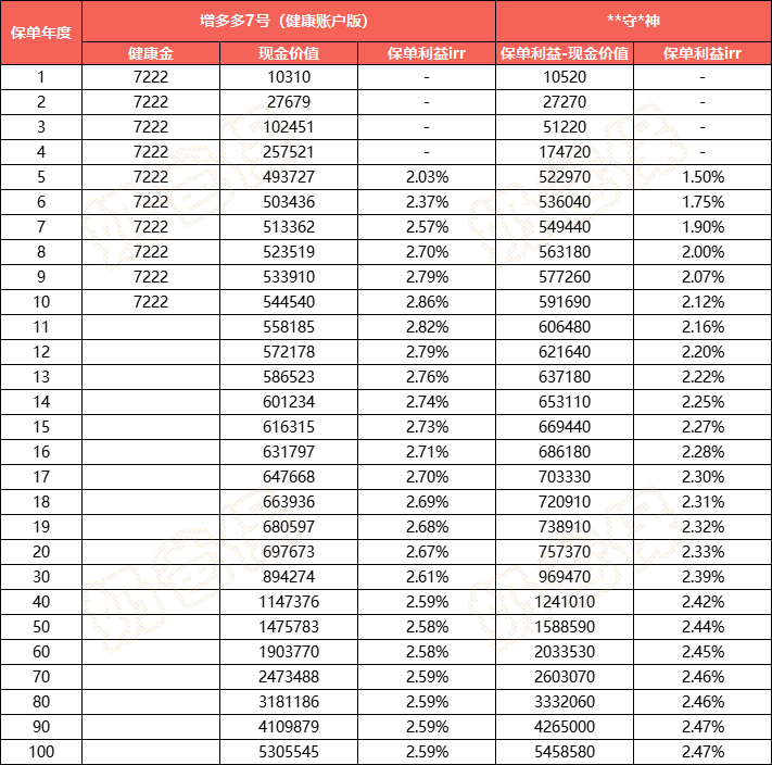 保单前10年还持续给客户提供健康金,兼顾财富增值的同时也实现了保障,保单利益上表现也更好: