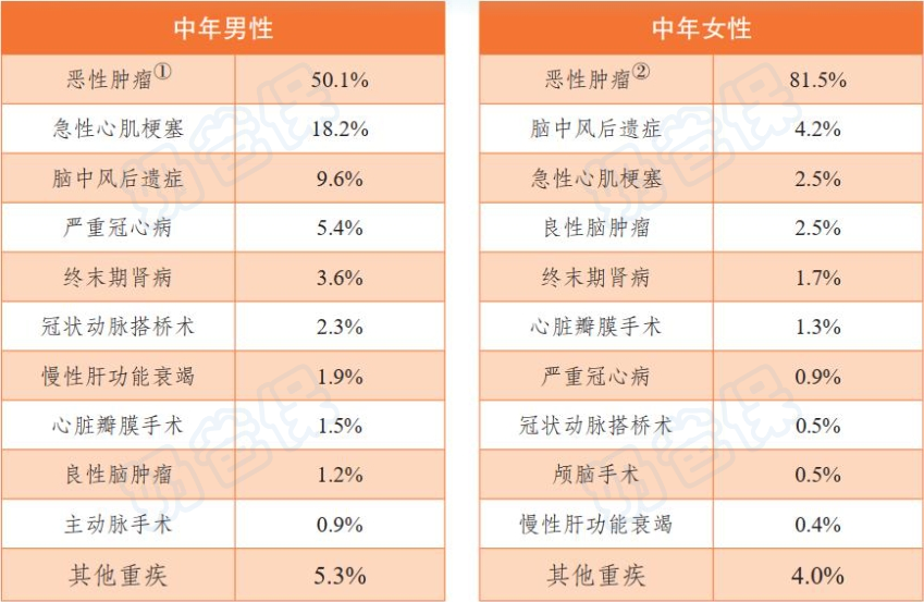 根据中国保险行业协会发布的《重大疾病保险的疾病定义使用规范(2020年修订版)》统计,