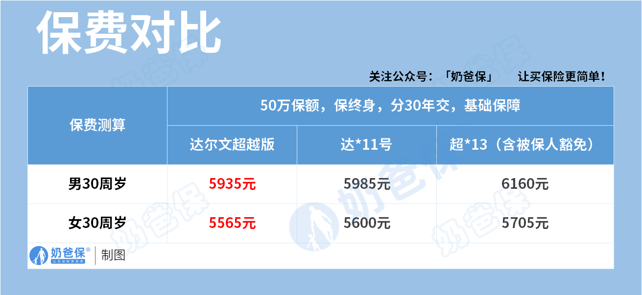 30岁人群投保华佗1号康泰版,比超级玛丽和达尔文便宜100元/年!