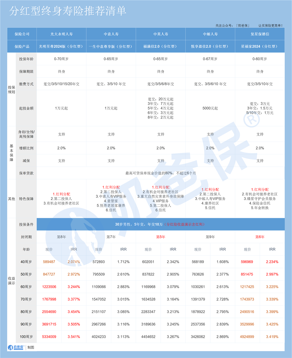 奶爸分别整理了5款,总共10款增额终身寿险产品,带大家深入了解。