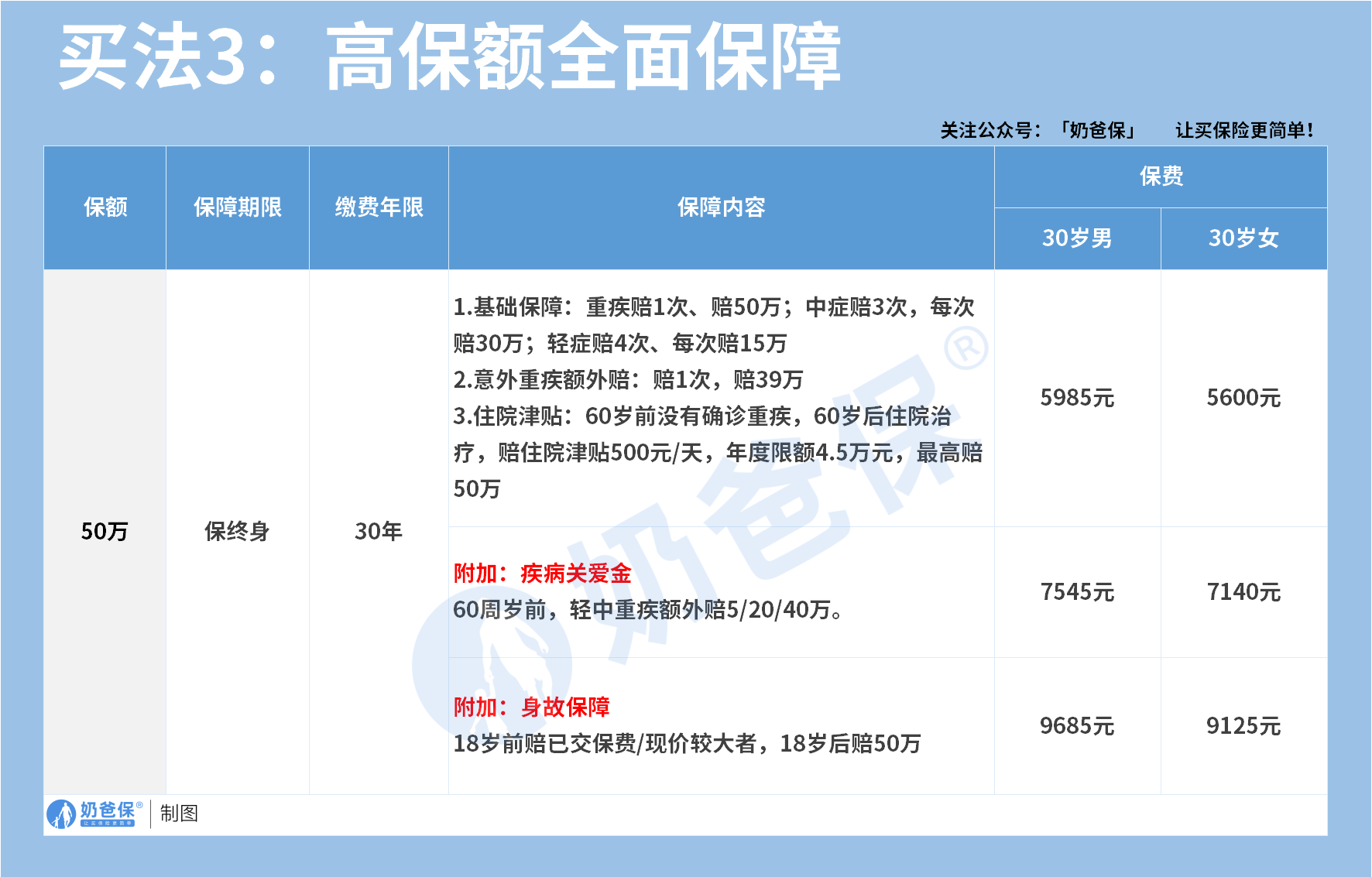 如果还有预算的朋友,可以再考虑附加一份身故保障,