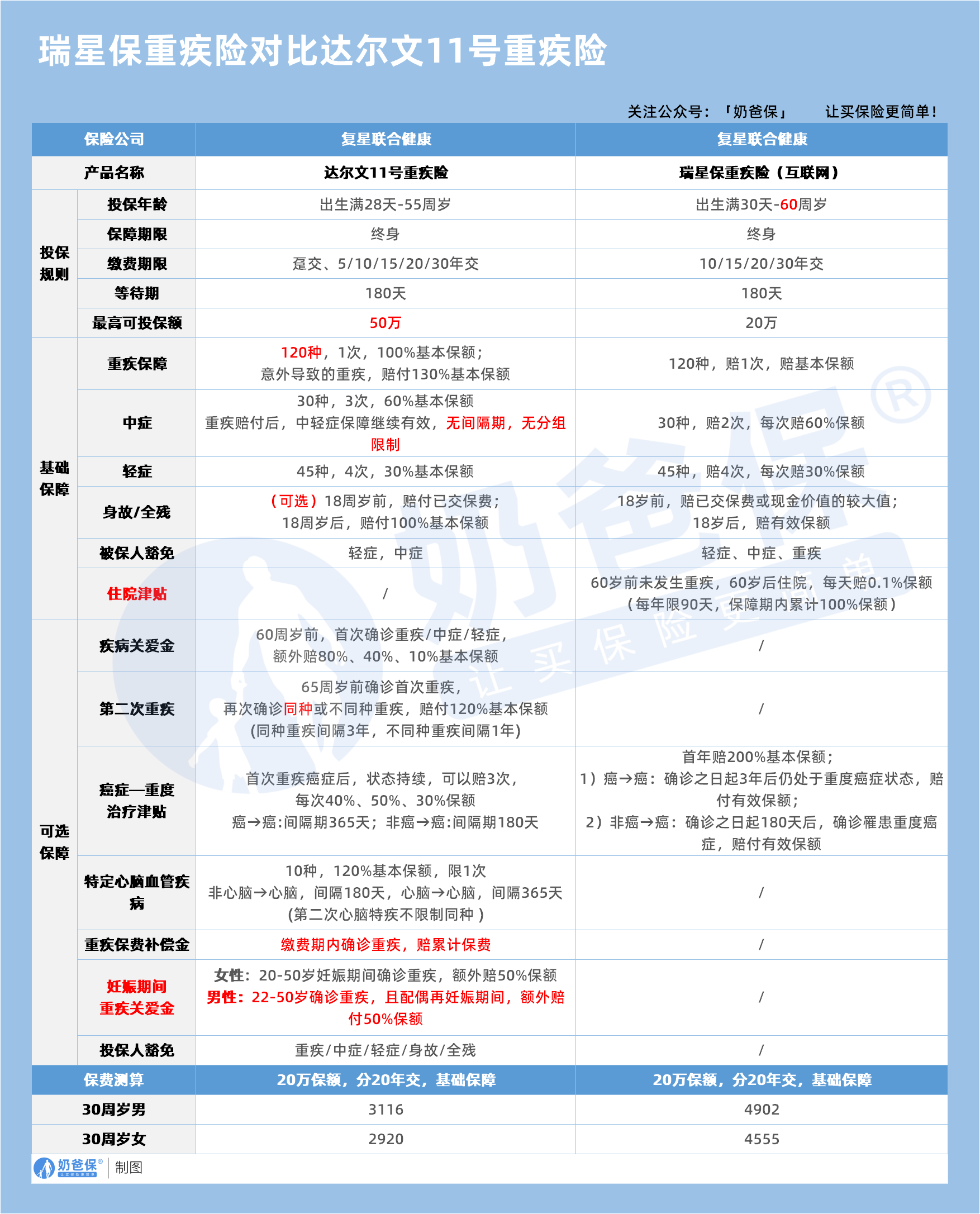 二、复星联合瑞星保重疾险和达尔文11号怎么选?