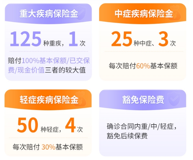 轻中重疾保障都涵盖了,且轻症+中症赔付次数共7次,
