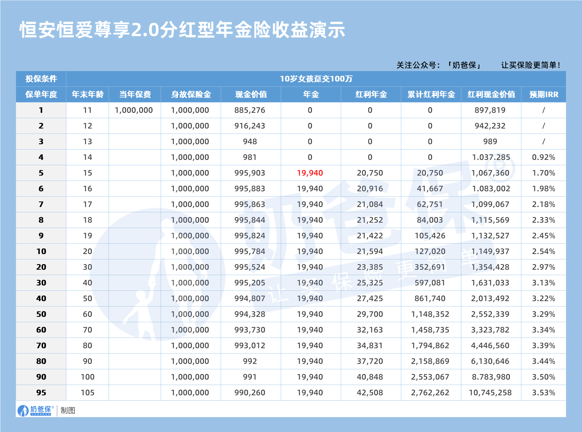 保单IRR接近3.5% ,现金价值和分红不断累积,就算孩子长寿,也不愁没钱花;