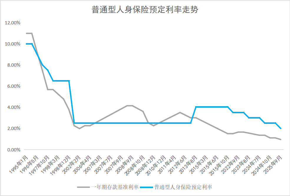 可后来呢,存款利率一路跌,保险预定利率也跟着“追跌”。