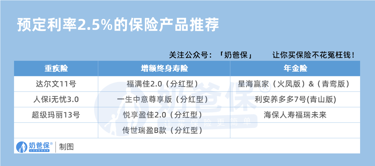 虽然预定利率下调,好多产品收益、价格变了,但市场上还是有一批预定利率 2.5% 的 “宝藏产品” 值得关注: