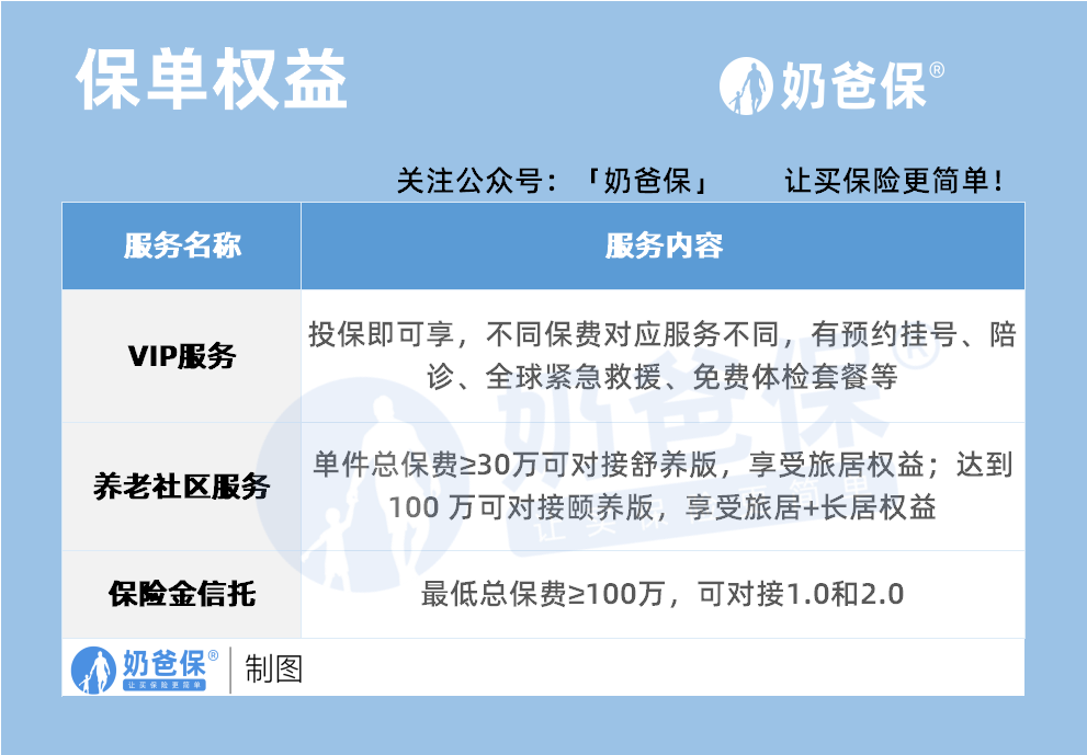 总保费≥100万:对接“颐养版”,能长期居住(适合想提前锁定养老床位的人)。
