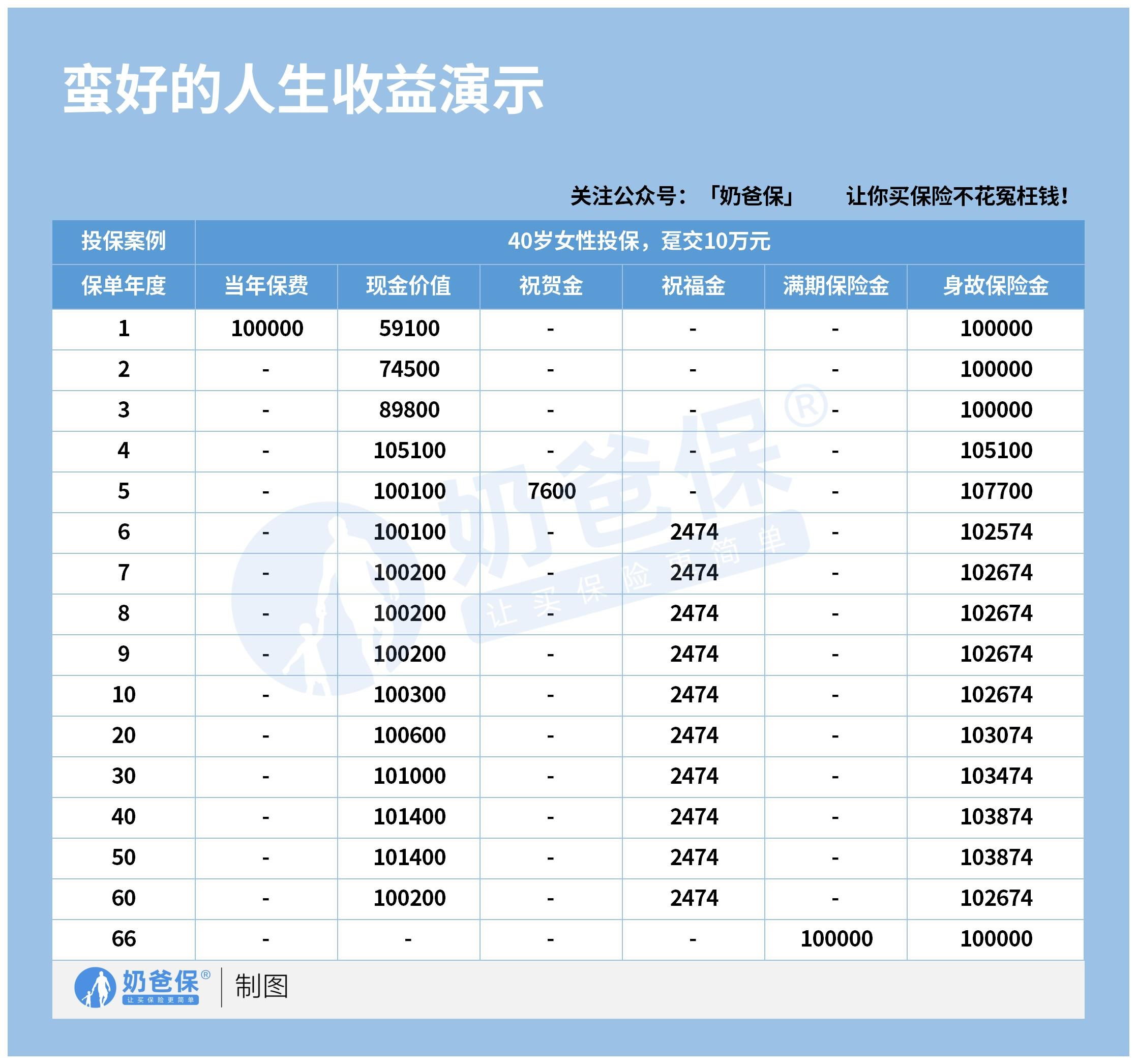四、“蛮好的人生”怎么样?40岁女性投保案例详解