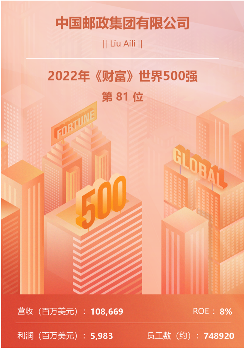 2022年《财富》世界500强第81位,世界邮政领域利润排名第一,