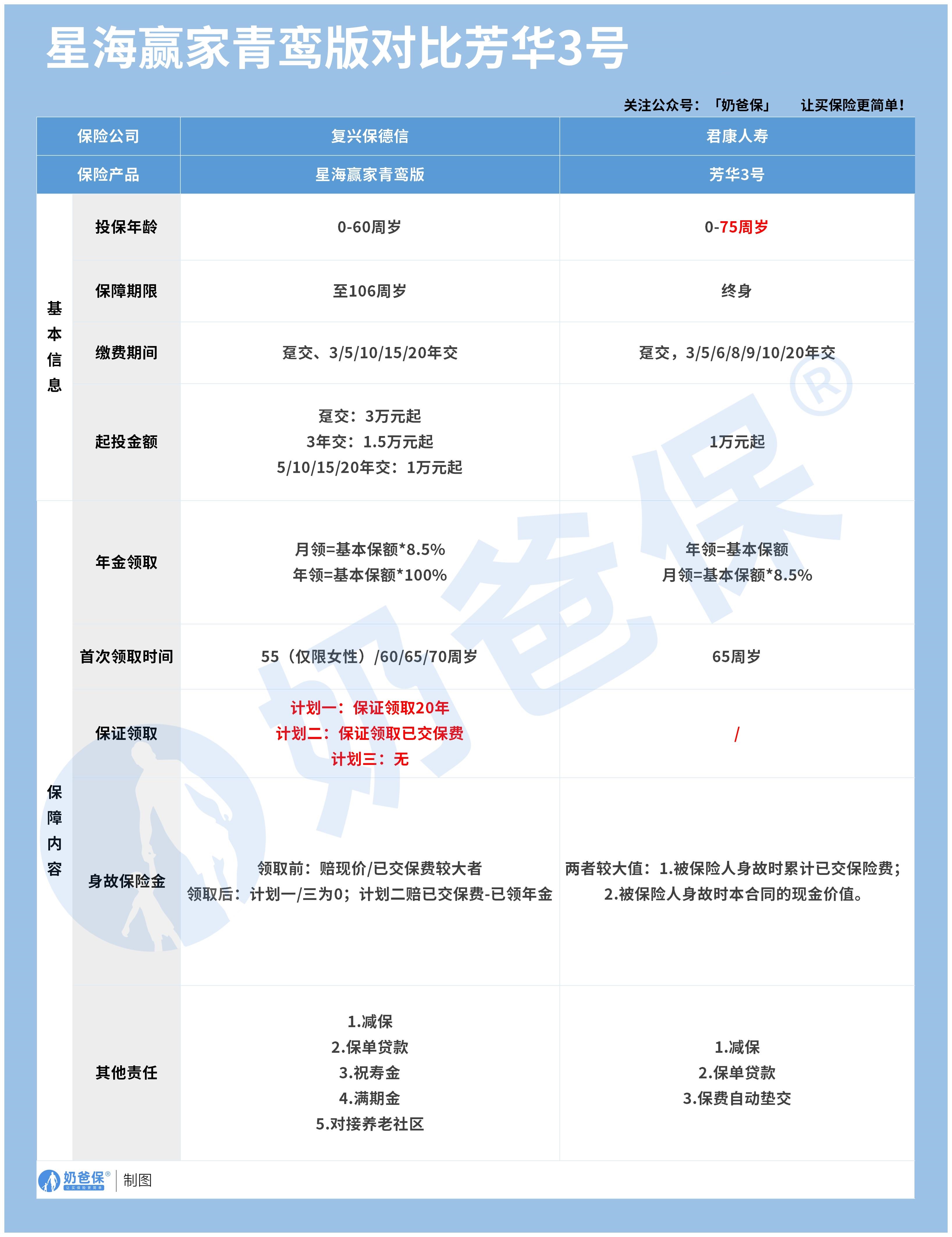 而复保星海赢家青鸾版就不符合年龄要求了,从这点看,君康对高龄人群的包容度更实用。