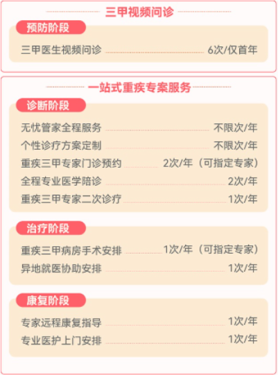 服务内容包括三甲医院视频问诊,方便被保险人随时咨询专业医生;
