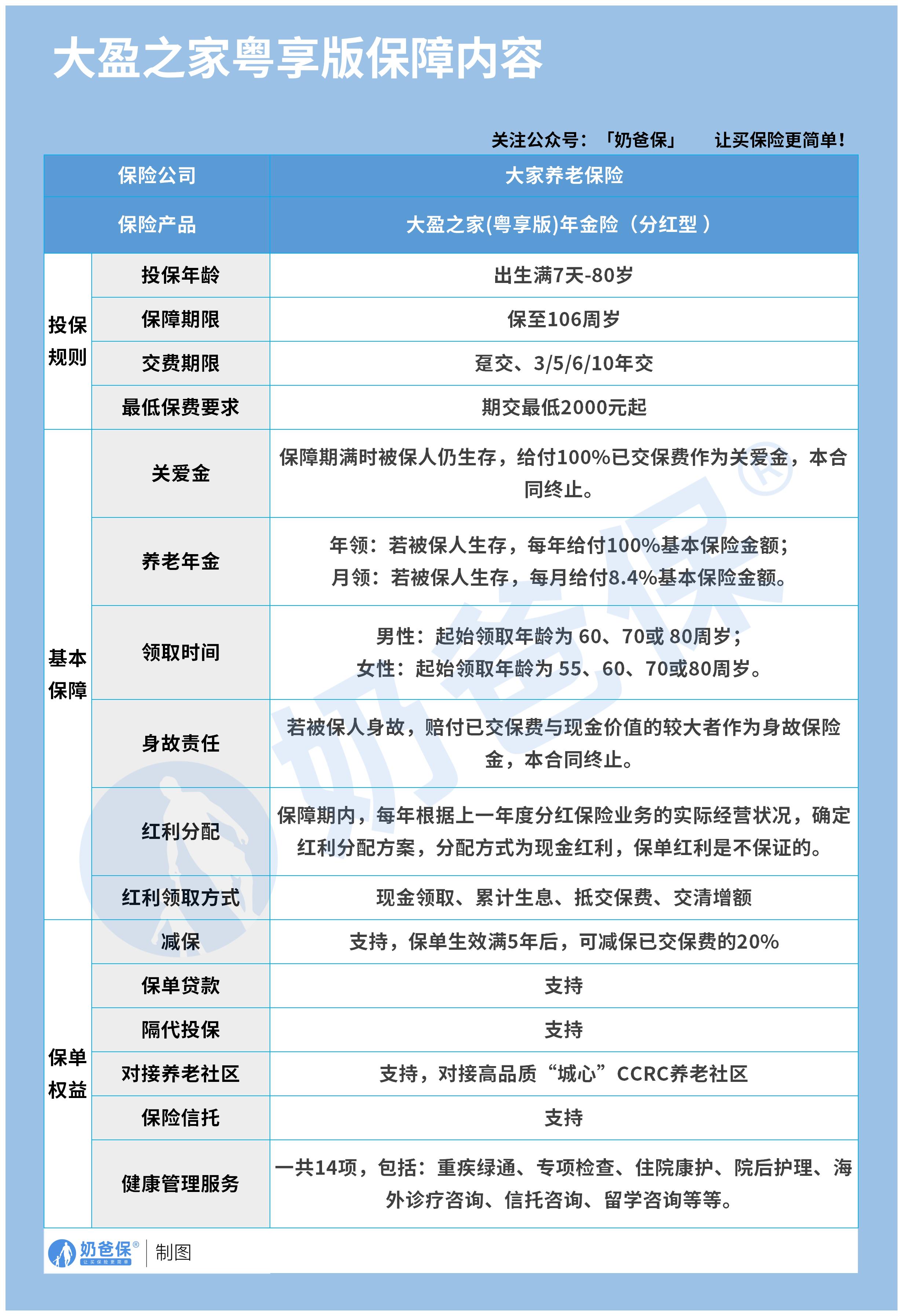 最近,大家养老保险推出的大盈之家粤享版年金险(分红型),