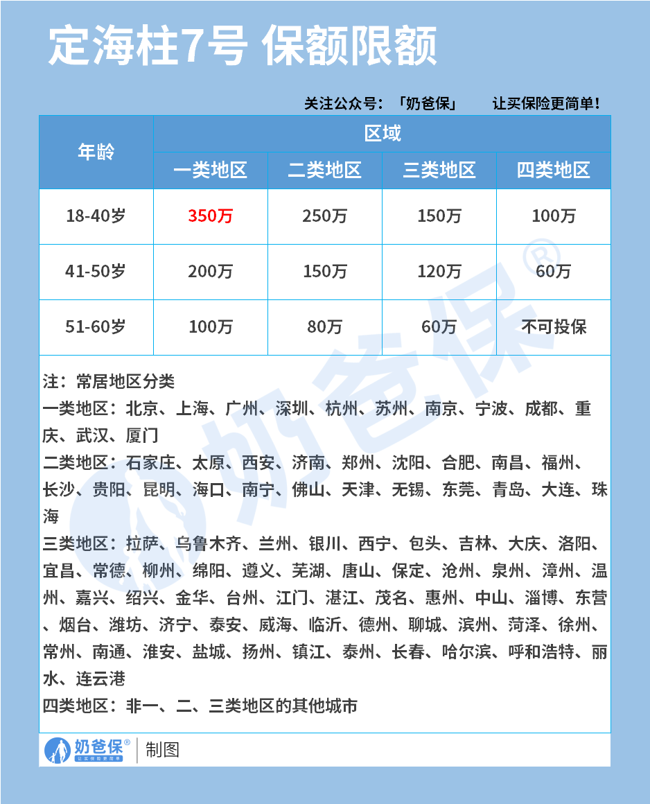不同年龄、地区最高可投保额不一样: