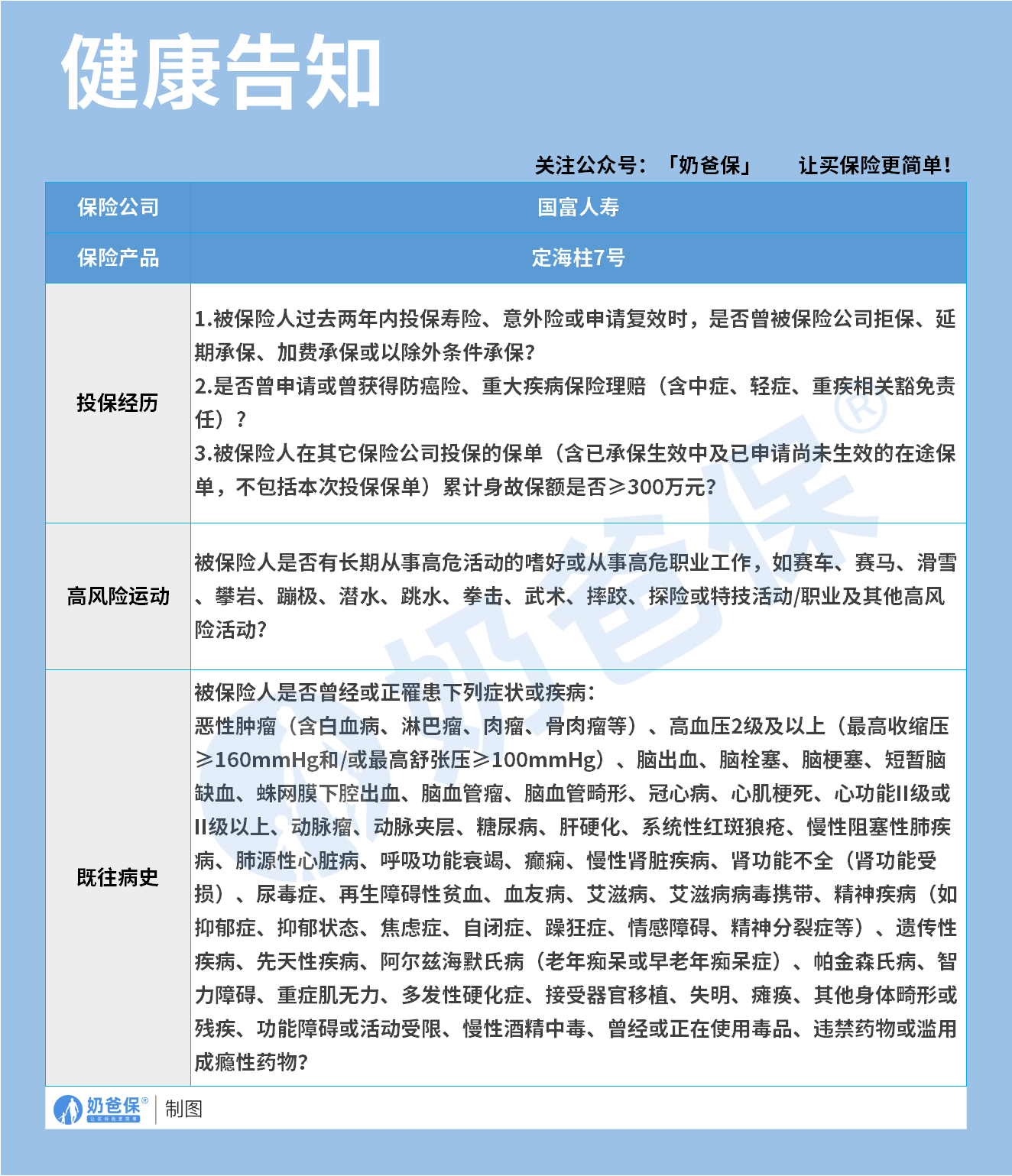 投保经历、高风险运动和既往病史。