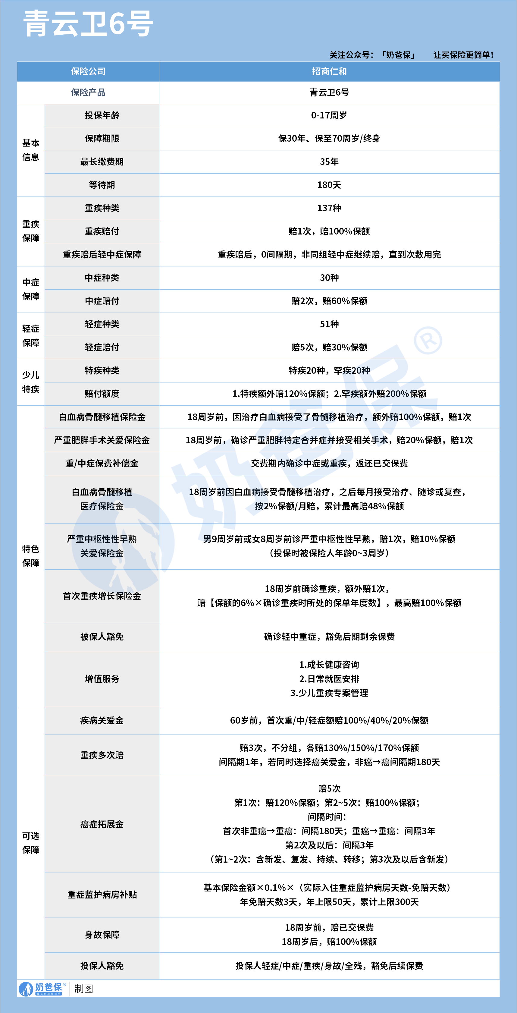 少儿重疾险是家长给孩子配置保障的核心选择之一,青云卫 6 号作为招商仁和推出的少儿重疾险产品,近期关注度较高。
