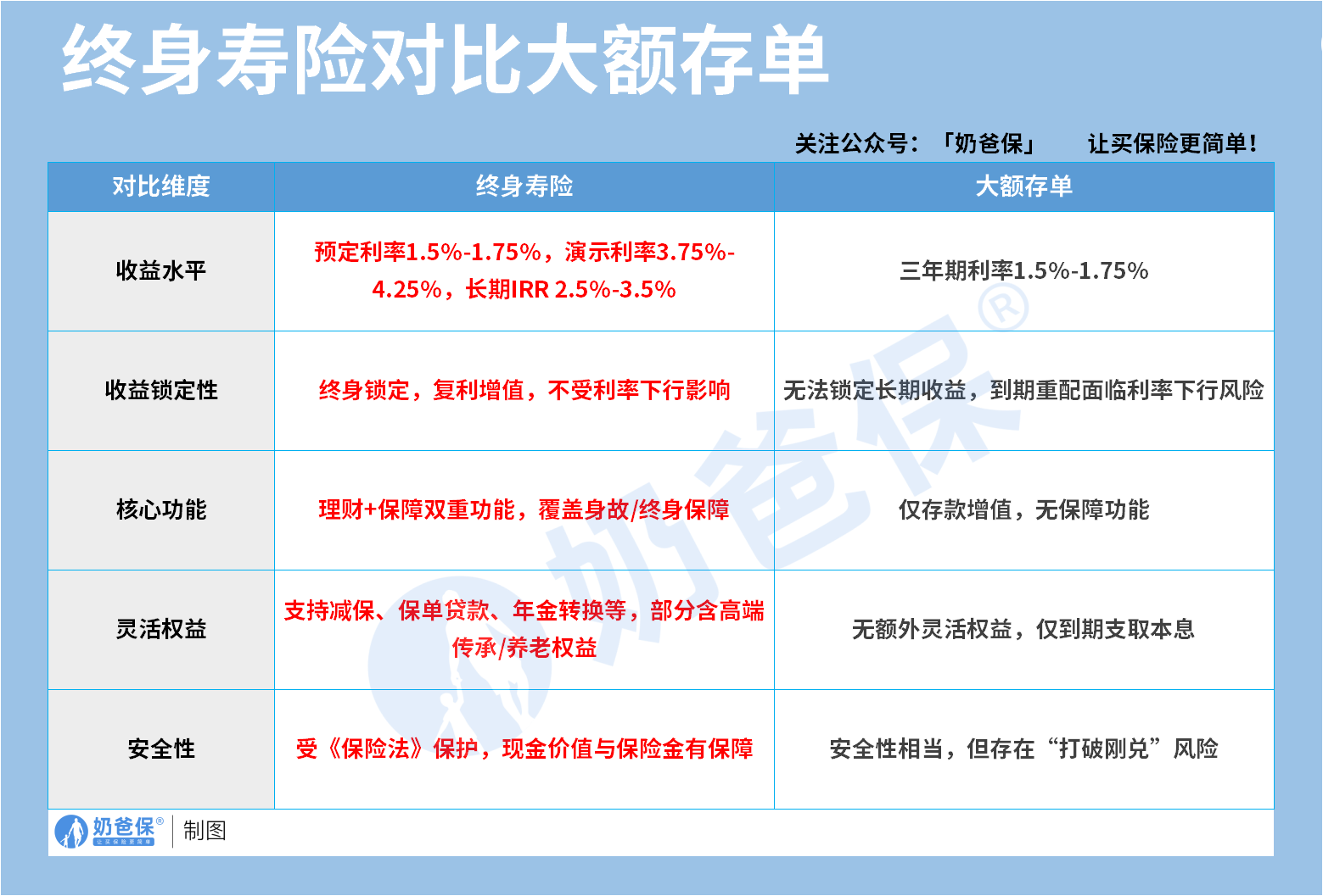 在稳健理财领域,终身寿险凭借其独特的优势,正在成为大额存单的理想替代者。