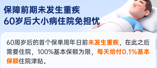 即60岁前未发生重疾,60岁后住院,每天赔0.1%保额,