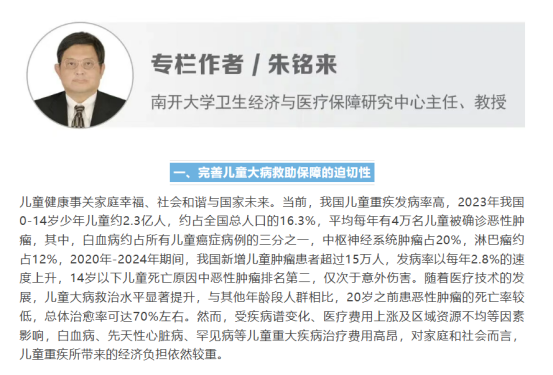 数据显示,儿童重大疾病发病率逐年上升,