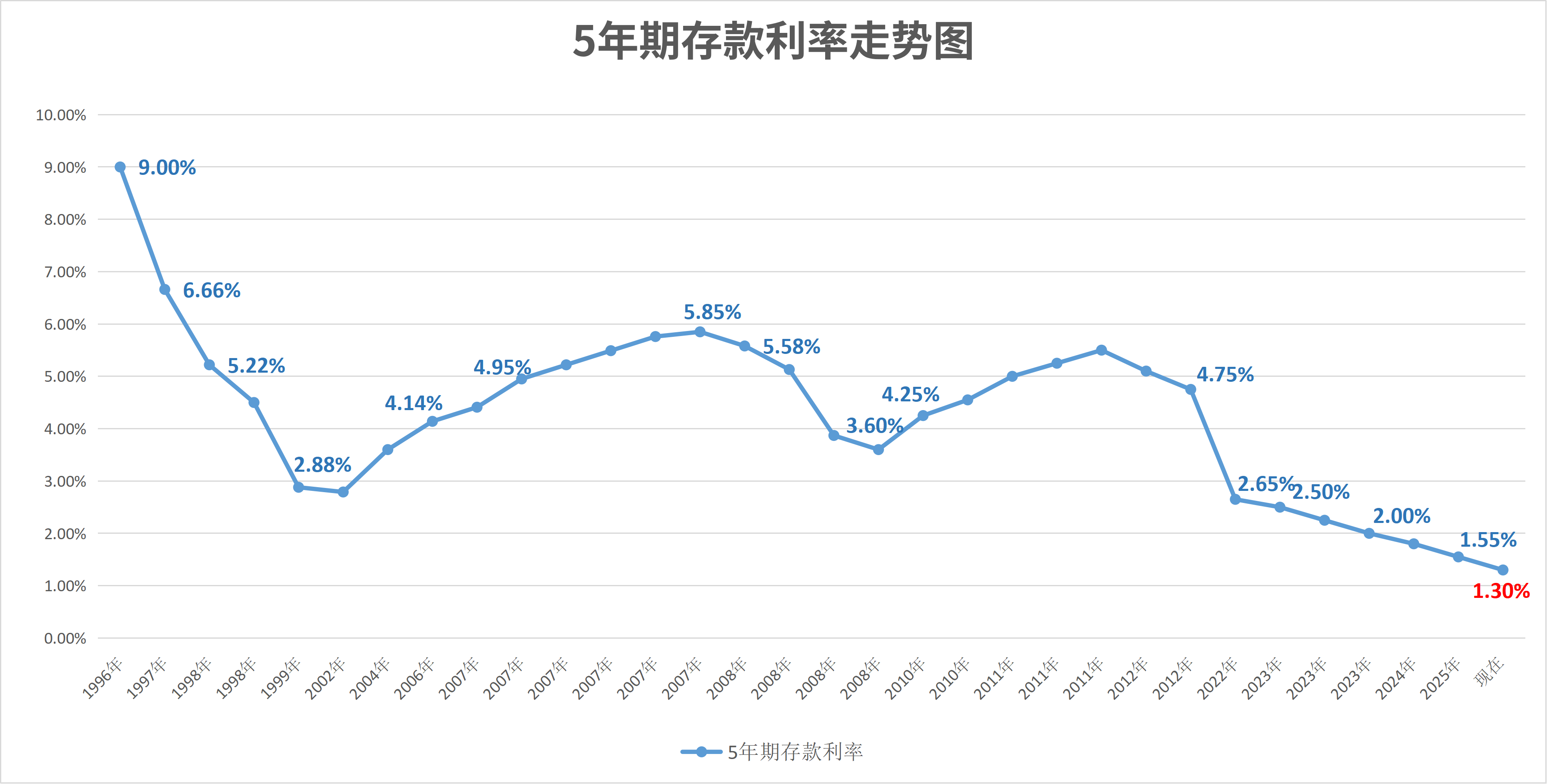 但按照目前的行情来看,5年后可能利率已经降到1%、甚至更低了。